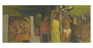 Catalogue note: Arup Das is a figurative painter and an acclaimed muralist. "My works are about human beings, but I like to put them in their historical and social context." Human figures occupy the central position in his paintings where he portrays man as a social and historical being placed within the framework of his cultural and natural environment.Born in West Bengal in the year 1924, Das graduated from the Government College of Arts and Crafts, Calcutta. He held 22 solo shows in several countries including Japan, the UK and Canada, and participated in 24 group shows in India and abroad. He won the National Award from the Lalit Kala Akademi in 1957 and the President's Silver Plaque in 1957. His works are in the collections of the National Gallery of Modem Art, New Delhi, the Sahitya Kala Parishad, New Delhi, and the All India Fine Arts and Crafts Society, New Delhi. The artist passed away in 2004.