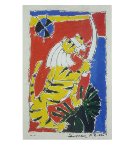 Catalogue note: An Indian painter best known for his brightly coloured works depicting horses, urban landscapes, the Bollywood star Madhuri Dixit, and nude Hindu goddesses. Employing a style based in Cubism, his irreverent subject matter pushed the limits of censorship in India. Born Maqbool Fida Husain on September 17, 1915 in Pandharpuer, India, to a secular Muslim family, he studied calligraphy before moving to Mumbai where he worked painting cinema posters and designing toys. In 1953, Husain went to Europe for the first time where he saw the works of Pablo Picasso, Paul Klee, and Henri Matisse. Husain was forced to go into exile in 2006, due to the several lawsuits filed against him by the Indian government for his defamation of Hindu culture. For the remainder of his life he spent much of his time between Qatar and the United Kingdom. Husain died on June 9, 2011 in London, United Kingdom. Today, his works are in the collections of the Los Angeles County Museum of Art, the National Gallery of Modern Art in Mumbai, and the National Museum of Islamic Art in Doha.