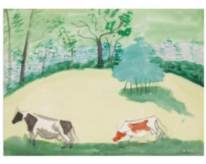 Catalogue note: Milton Avery is an American painter celebrated for his portraits, still life, and landscapes. Working with both oils and watercolours, he used broad swaths of luminous colour and stylised forms to capture the essence of a scene without fixating on details. When Avery moved to New York in 1925, he befriended other painters of the era, such as Mark Rothko, Adolph Gottlieb, and Barnett Newman, developing the increasingly abstract style exemplified by his late work Green Sea (1954). Exhibitions at the Phillips Collection and the Whitney Museum of American Art further solidified his reputation as a seminal American artist. The artist died in 1965. Today, Avery’s works are held in the collections of the National Gallery of Art in Washington, D.C., the Tate Gallery in London, the Museum of Modern Art in New York, and the Los Angeles County Museum of Art.